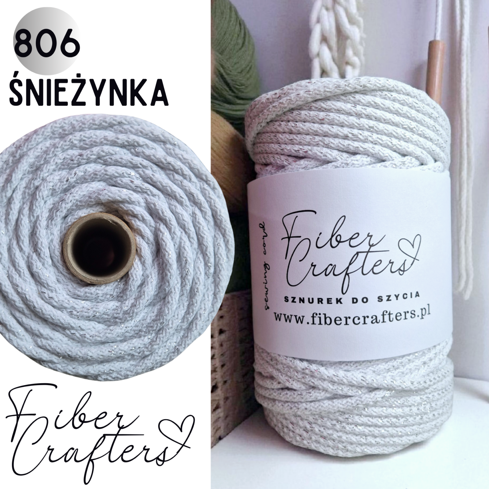 Sznurek do szycia FIBER CRAFTERS 6mm 50m 806 ŚNIEŻYNKA (BIAŁY+SREBRO)