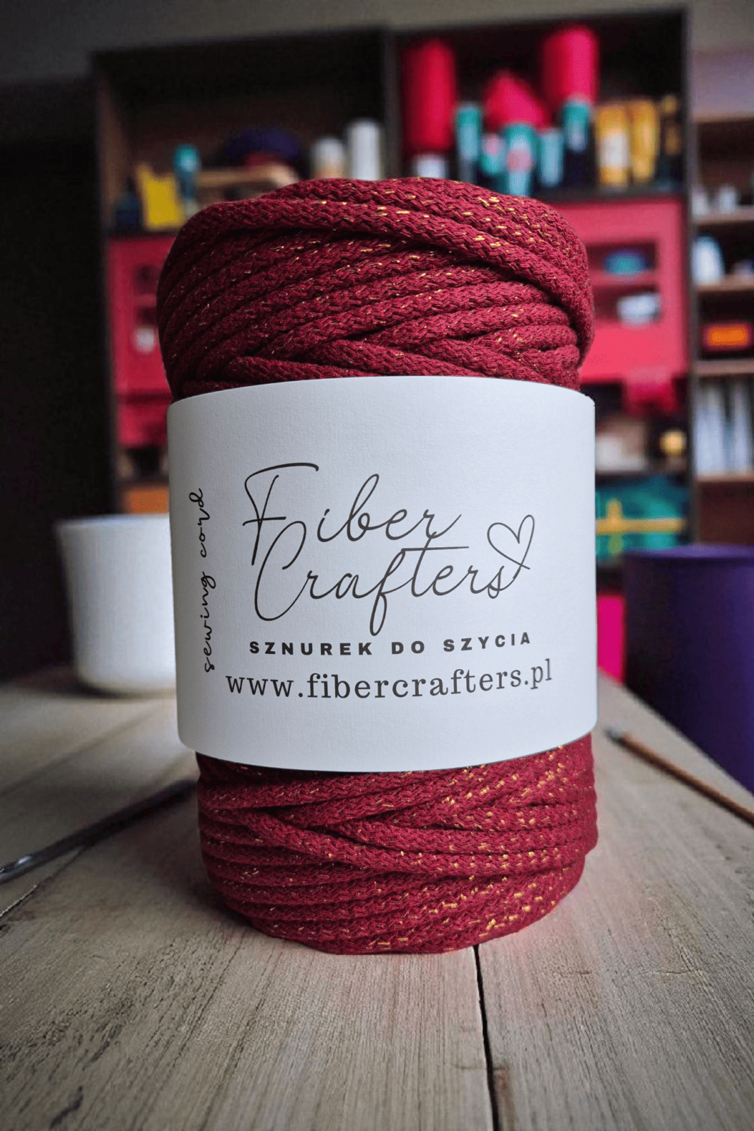Przedmiotem oferty jest sznurek 6mm o nawoju 50m (możemy nawinąć większą ilość metrów w jednym kawałku) w kolorze WINO z dodatkiem złotej, opalizującej nici.