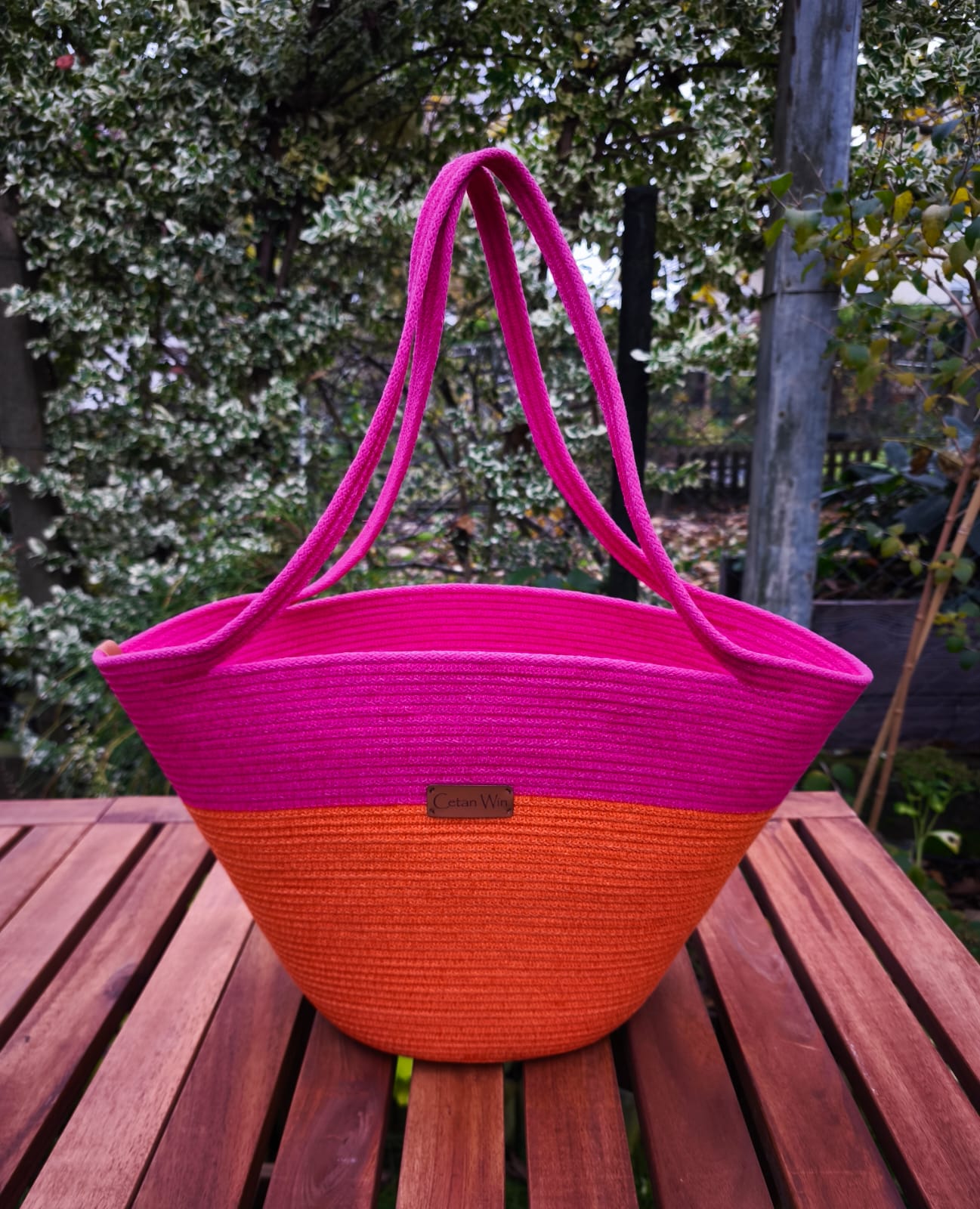 100 metrów sznurka starczyło na uszycie dużej torby widocznej na ostatnim zdjęciu oraz mniejszego koszyczka na chleb i kilku mniejszych podkładek na stół 😉