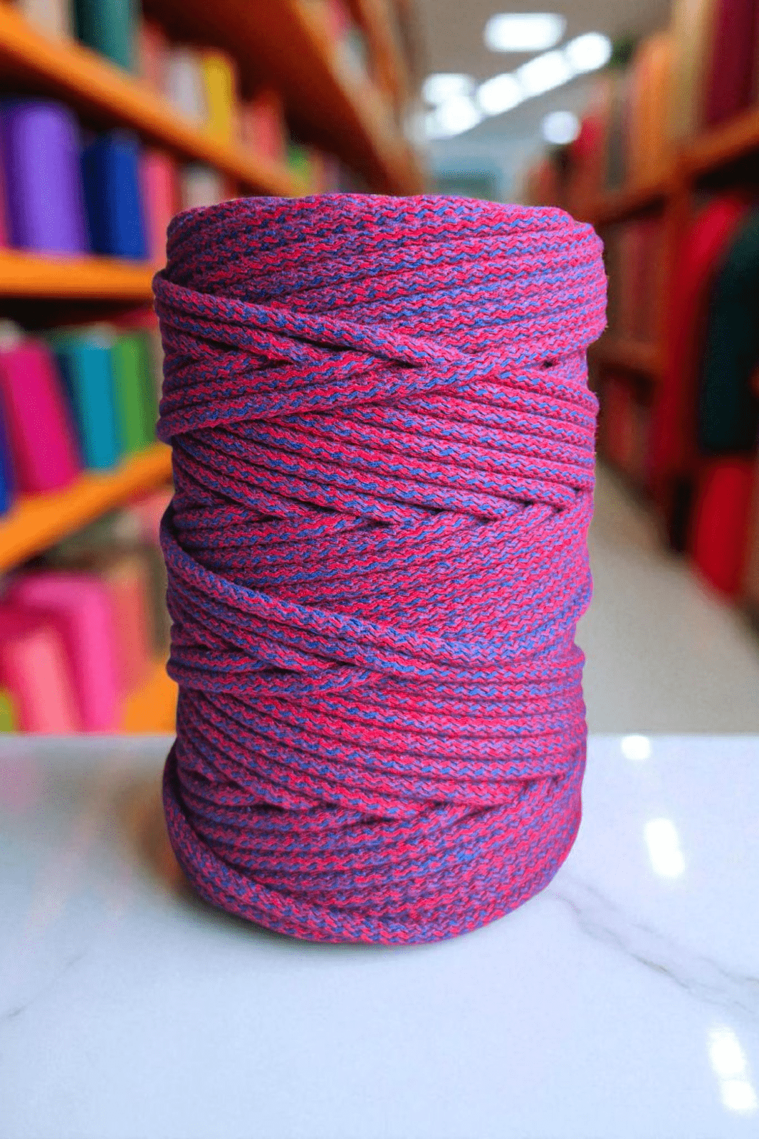 Przedmiotem oferty jest sznurek bawełniany 6mm o nawoju 100m (możemy nawinąć większą ilość metrów w jednym kawałku) w kolorze SCARLET BLUE.