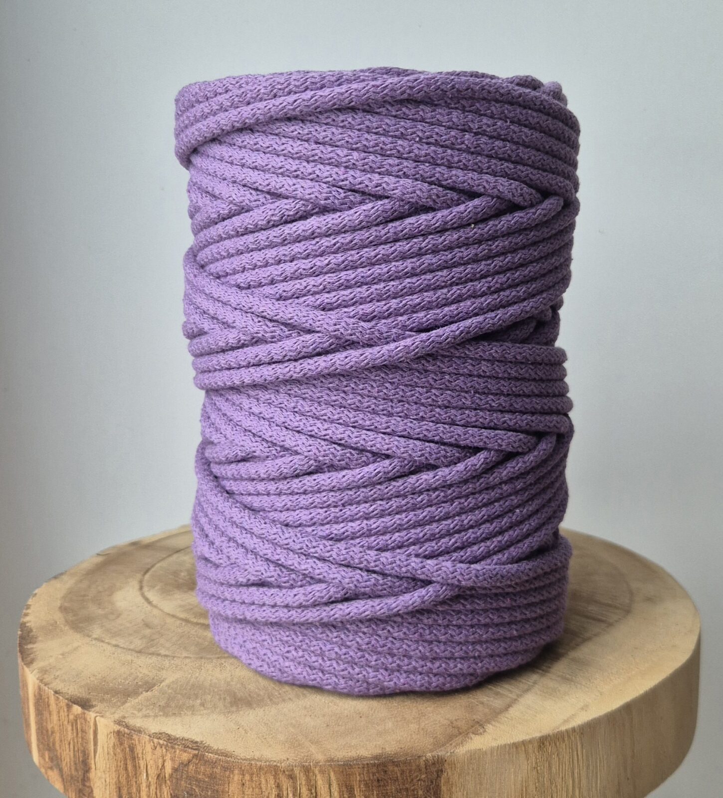 Przedmiotem oferty jest sznurek bawełniany 6mm o nawoju 50m (możemy nawinąć większą ilość metrów w jednym kawałku) w kolorze LAWENDA.