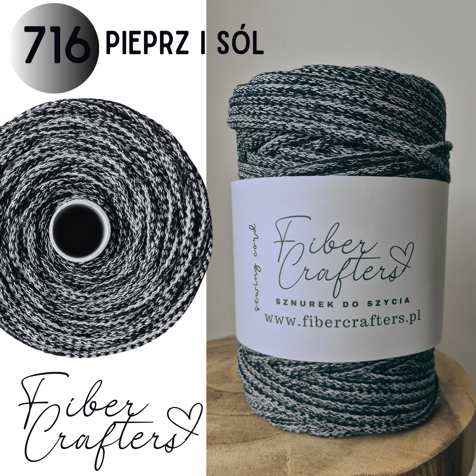Przedmiotem oferty jest sznurek bawełniany 6mm o nawoju 50m (możemy nawinąć większą ilość metrów w jednym kawałku) w kolorze PIEPRZ I SÓL.