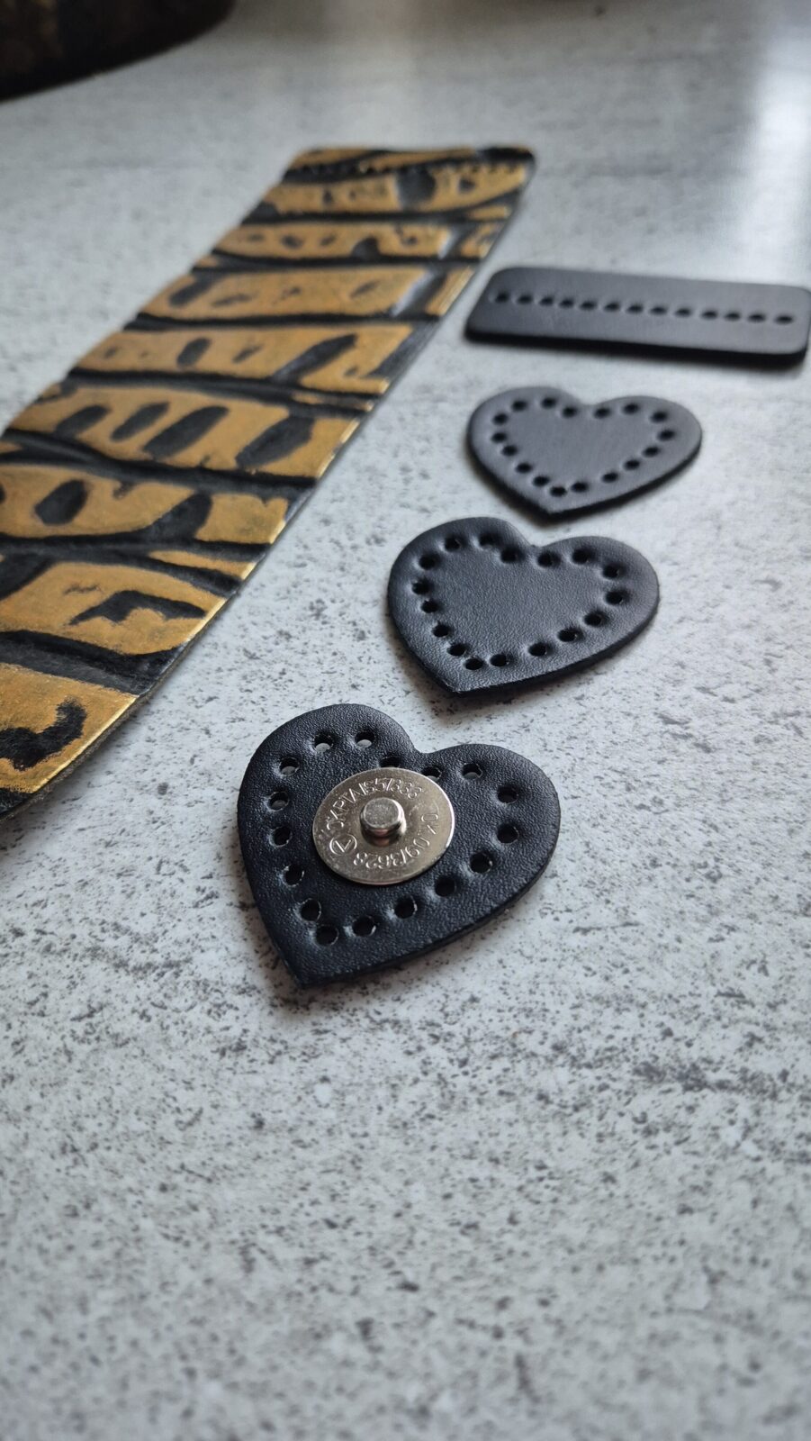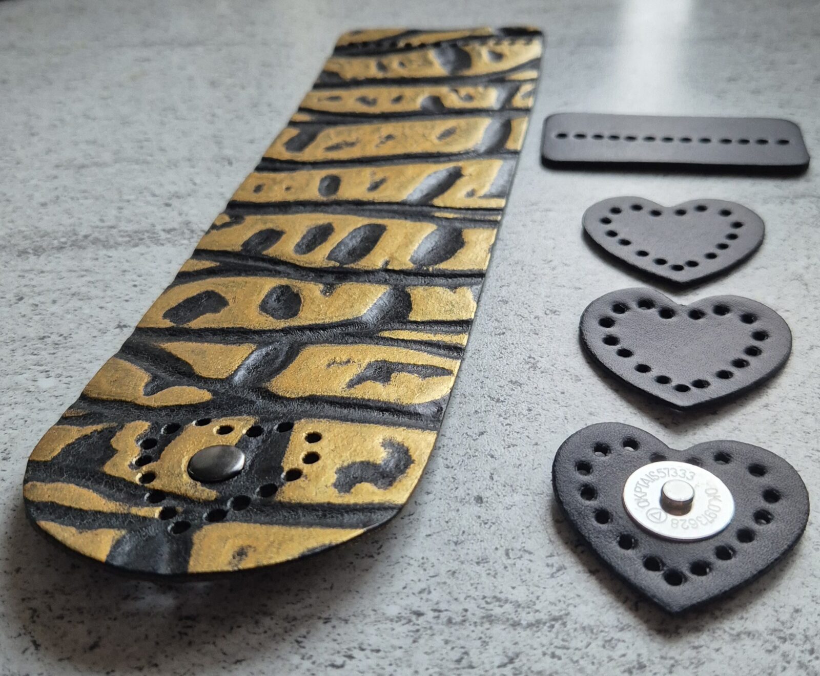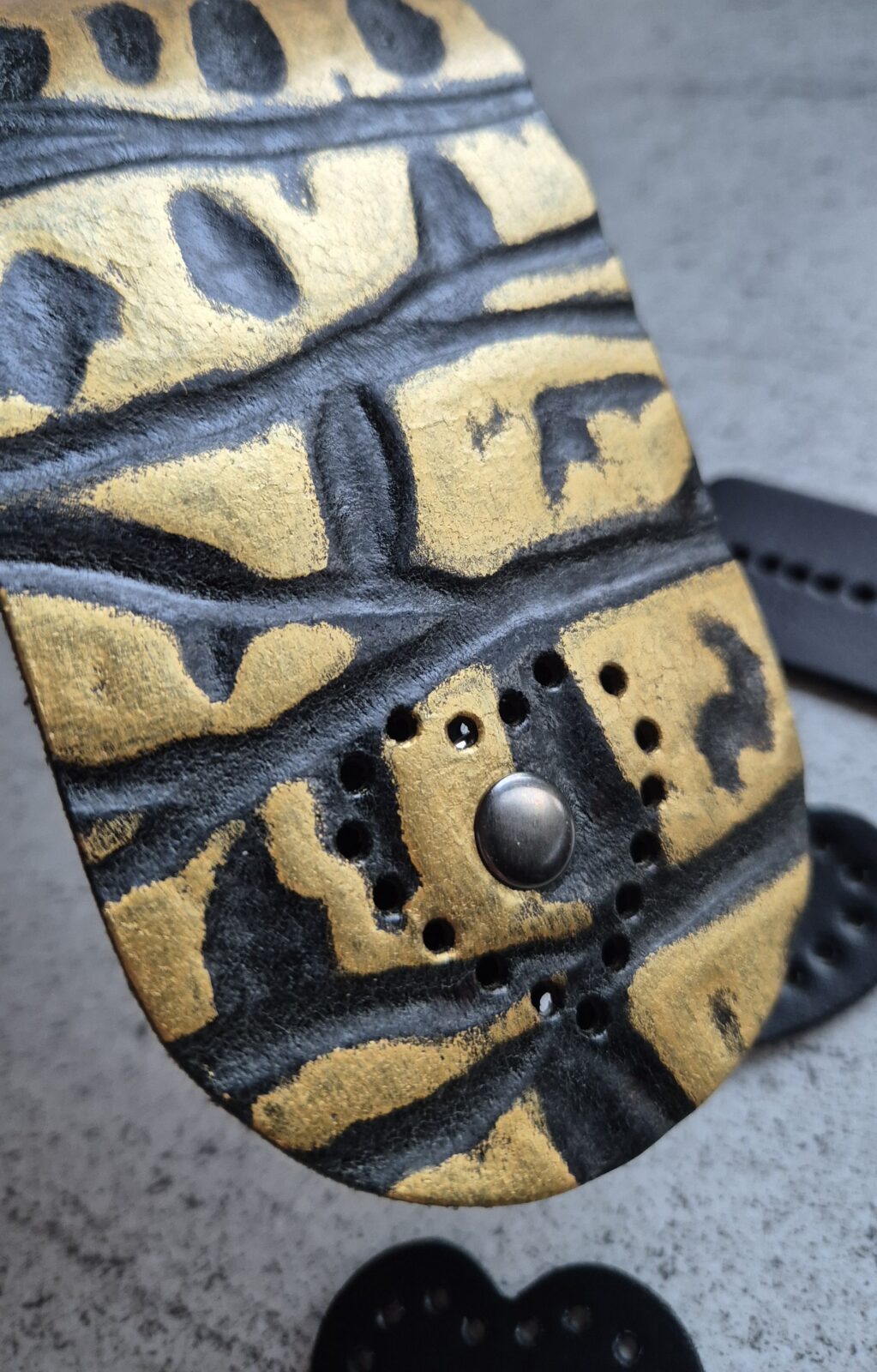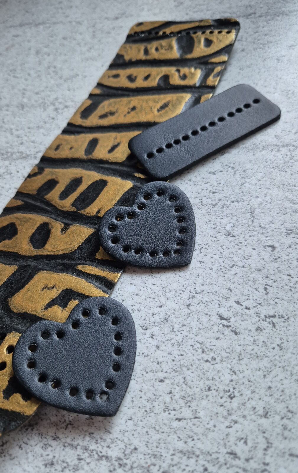 Naturalna czarna skóra, tłoczona z dodatkiem złota – elegancja w najczystszej formie